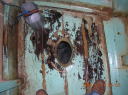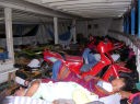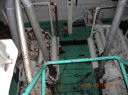 船内下に見える機関室、10トン車程度のエンジンが2基稼動中 |